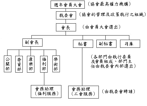 - 執 行 委 員 會 下 設 有 勞 資 部 、 學 術 部 、 公 關 部 、 康 樂 部 及 福 利 部 。 各 部 門 由 執 行 委 員 和 會 員 組 成 。